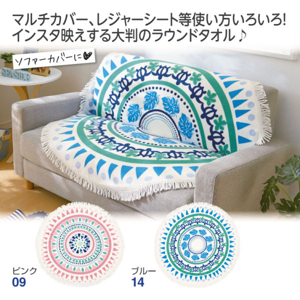 大きなラウンドレジャータオル お洒落にアウトドアを満喫できるラウンドタオル ノベルティsp